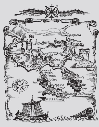 Халкидики – этот величественный полуостров – напоминает трезубец, пронзающий Эгейское море. В глубокой древности верили, что эти скалистые, труднодоступные места были жилищем гигантов, которые боролись с богами.