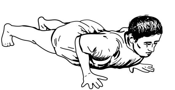 Лягте на живот, отогнув на себя пальцы ног, а ладони положите на уровне плеч. Глубоко вдохните и, задержав дыхание, попеременно выпрямите и согните локти; туловище при этом должно быть неподвижным. Затем, выдыхая, опуститесь медленно, вначале подбородком и грудью, затем животом. Не забывайте о правильном дыхании.