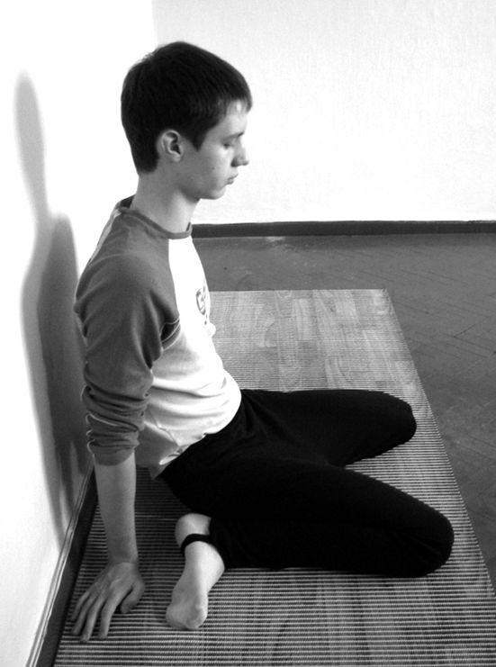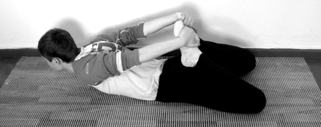 ВНИМАНИЕ: даже для здорового человека при слабой растяжке это трудновыполнимая задача. Упражнение при всей внешней простоте дается далеко не сразу. Для нас главное – слегка попружинить тазом и натянуть переднюю поверхность бедра. При этом для подстраховки от растяжения в коленном суставе важно хорошо опираться на руки. За 2–3 месяца возможно полностью сесть на пол.