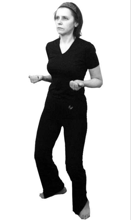 Исходное положение: стоя, ноги на ширине плеч, присогнуты в коленях – стойка всадника. Спина прямая Взгляд направлен вперед. Руки вдоль туловища, согнуты в локтях, сжатые кулаки обращены вверх (рис. 6.44).