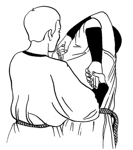 Помощник, стоящий перед вами, должен положить свои ладони на ваши локти и начать сводить их плавным движением. Вы в это время делаете выдох.