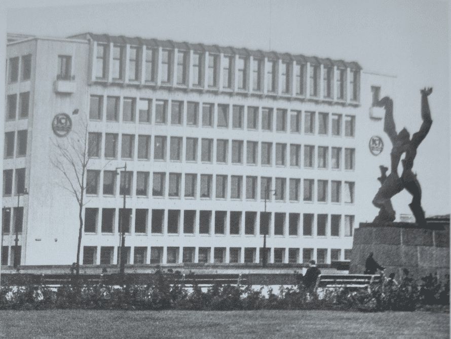 Это сооружение (вы видите его на фотографии 52) имеет длину 220 метров, ширину 85 метров и высоту 40 метров. Арендуемая площадь составляет 100 тысяч квадратных метров, по самым скромным подсчетам в рабочих помещениях разместились полторы сотни торговых контор, магазинов, демонстрационных залов.