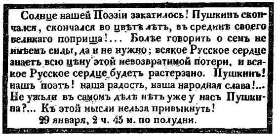 Убийство Пушкина широкие круги петербургского общества восприняли как общественное бедствие. Иностранные дипломаты доносят своим дворам, что гибель поэта возбудила «национальное негодование», «всеобщее возмущение» (баварский посланник), расценивается как «общественное несчастье» (неаполитанский посланник), как «потеря страны» (прусский посланник); вюртембергский посланник сообщает, что Пушкину «создают апофеоз» чиновники, «многочисленный класс, являющийся в России в некотором роде третьим сословием». Французскому послу Баранту приписывают слова, что «общенародное чувство», проявившееся в те дни в Петербурге, «походило на то, которым одушевлялись русские в 1812 году».