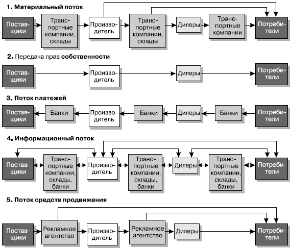 Рис. 13.2. Пять различных потоков в канале распределения автопогрузчиков.