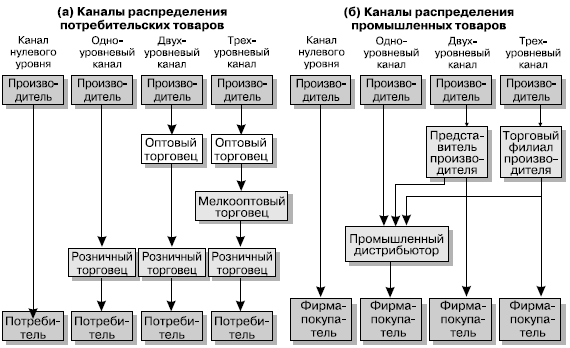 Рис. 13.3. Каналы распределения потребительских и промышленных товаров.