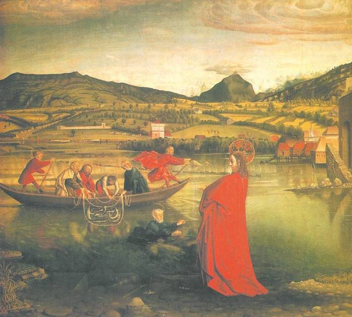 К. Виц. «Чудесный улов рыбы». Створка алтаря Святого Петра, 1444 год, Музей искусств и истории, Женева