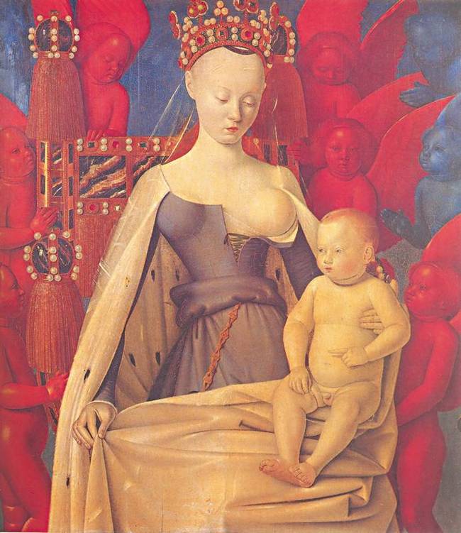 Правая створка диптиха изображает «Мадонну с младенцем» (Королевский музей изящных искусств, Антверпен). Считается, что в качестве модели художнику позировала возлюбленная короля, Агнесса Сорель. Юная Мария восхищает своей красотой и спокойствием. Ее бледное лицо и тело, голубое платье и накинутая на плечи горностаевая мантия кажутся еще более светлыми на фоне маленьких красных ангелов, слетевшихся к ее трону. Спинка трона Богоматери и корона на ее голове украшены драгоценными камнями и крупными жемчужинами. Тщательность, с которой выписана корона, свидетельствует о знакомстве мастера с северным искусством, в частности с творчеством Яна ван Эйка. Строгие линии и сдержанный колорит придают картине необыкновенную выразительность и монументальность.