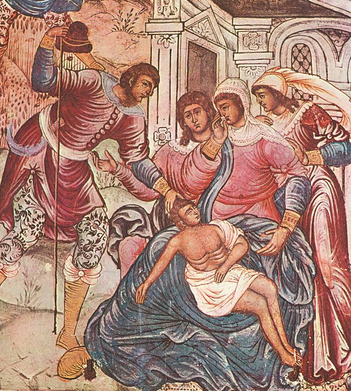Г. Никитин. «Сунамитянка, оплакивающая смерть сына». Фрагмент «Деяний пророка Елисея», 1680–1681 годы, церковь Ильи-пророка, Ярославль