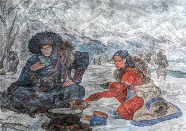 Перед ним была странная картина. Женщина левой рукой, держащая какой-то свёрток правой пыталась оттолкнуть мужчину, который угрожал ей хутгой. А сзади сидел по-турецки какой-то старик, а за ним ещё пару мужиков, точащих своё оружие. В считанные секунды картина словно остановилась и все обратили внимание на вошедшего странника, стоявшего в проходе и впустившего холод, которым уже успела наполнится юрта.