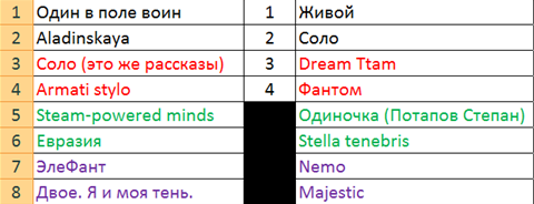 Оцениваются команды, выделенные одним цветом, отдельно в левой и правой половинах списка.