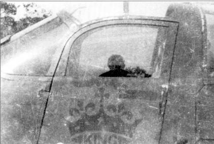 Капитан Расмуссен позирует на крыле своего истребителя P-39D-1 с серийным номером 41-38356. Снимок сделан на аэродроме Милн-Бэй в конце 1942 г. В центре стоит механик самолета Тони Тротта.