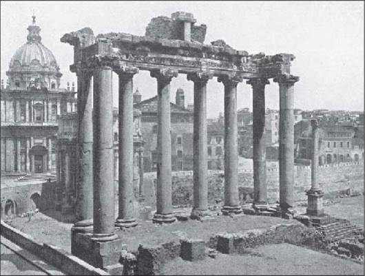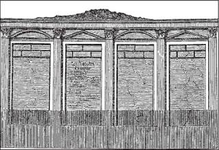 Новая фамилия императоров,царствовавших в течение почти целого столетия, начинается Нервой. Фальшивая галерея на форуме Нервы, принадлежавшая к ограде храма Минервы, представляет собой дальнейшее развитие архитектурной декоративности. Колонны здесь не уходят наполовину в стену, не являются в виде полуколонн, а стоят свободно, отдельно от нее. Поэтому их антаблемент выдается из стены гораздо сильнее, чем бывало раньше, и в этом выступе вперед участвует также и аттика, на которой помещено рельефное изображение Минервы.