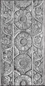 Потолки и фризы в этих пещерах покрыты обильными, роскошными и вместе с тем свежими и стильными орнаментами. Римские аканфовые листья, переплетающиеся с индийскими животными и цветами, листы индийского лотоса, звездчатые цветы, розетки всякого рода, меандр, зубчатые и разные другие полосы, – все это, представляя крайне разнообразные сочетания и блестя великолепными колерами, образует одно целое, поразительно фантастичное и полное вкуса.