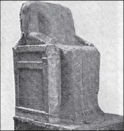 В противоположность всем этим каменным изваяниям, отзывающимся деревянным стилем, сидячие статуи из Дидимэона, знаменитого храма Аполлона в Дидимах, близ Милета, имеющие натуральную величину, а некоторые даже колоссальные, носят на себе отпечаток первобытно азиатского каменного стиля (рис. 273). Эти единственные остатки первого, разрушенного Дарием, храма были расставлены по пути к нему, подобно сфинксам на дорогах к египетским храмам. То были портретные статуи, посвященные божеству теми лицами, которых они изображали. Десять из них поступили в Британский музей; большинство их без голов, и все они поломаны и разбиты. Фигуры сидят на высоких мраморных тронах в оцепенелой позе древнехалдейских сидячих статуй, с которыми мы уже ознакомились (см. рис. 159). Руки плотно прижаты к телу, ладони лежат на коленях, головы обращены прямо. Различие заметно только в одежде, которая на древнейших из этих изваяний облегает тело плотно и почти без складок, потом появятся узкие вертикальные складки, а позднее – разнообразные складки. По своей величине, положению и надписям эти портретные статуипервой четверти VII в. представляются самыми древними произведениями ионической монументальной скульптуры.