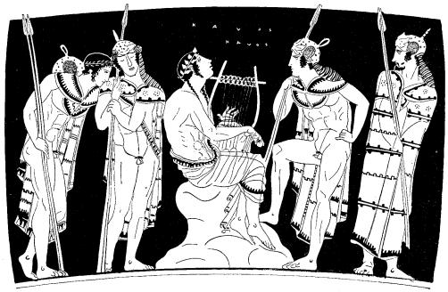 Оригинальные произведения греческой живописи V столетиясохранились главным образом на глиняных сосудах. Уцелевшие остатки оригинальной живописи той эпохи на глиняных досках и мраморе довольно ничтожны; напротив того, удивительной красотой отличаются вырезанные и некогда заполненные красками рисунки на обломках пластинок из слоновой кости, находящихся в Эрмитаже в С. Петербурге, – суд Париса, квадриги, различные фигуры и группы, исполненные с тем благородством и с той чарующей прелестью, которых достигло искусство в конце того столетия. Однако эти рисунки только немного приближаются в отношении стиля к живописи на вазах,которая одна дает нам возможность проследить ход постепенных успехов вообще живописи той поры. Теперь рассмотрим дальнейшее развитие краснофигурной живописи по черному фону ваз,которая, достигнув совершенства, отказывается от всякого добавления красок и после временного упадка уступает место более пестрой, богатой красками росписи.