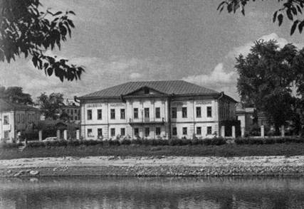 Монументальность и представительность отличают большой трехэтажный особняк, выстроенный в 1822–1823 годах Витушечниковым, одним из богатейших промышленников города (Набережная VI армии,131). Первоначально дом имел центральную часть в три этажа и более низкие боковые. В конце XIX века, после надстройки третьего этажа над боковыми частями и пристроек со стороны двора, он приобрел современный облик (илл. 41). Архитектура этого здания характерна для зрелого классицизма. Однако его главный фасад обнаруживает некоторую суховатость и плоскостность обработки. Центр дома, завершенный треугольным фронтоном, украшают в двух верхних этажах коринфские пилястры, легкие треугольные сандрики и межоконные ромбические вставки; при перестройке эта часть почти не претерпела существенных изменений.