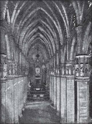 Вскоре французы во главе с анжуйской династией пришли в Нижнюю Италию в качестве завоевателей. Неаполь, который Карл I уже в 1265 г. сделал своей резиденцией, быстро занял первое место среди южноитальянских городов. Многочисленные постройки, церкви и замки стали воздвигаться в столице королевства и во всей стране. Мастеров для них цари анжуйской династии выписывали из Южной Франции. «Таким образом, — говорил Дегио, — непосредственно вслед за гогенштауфенской ранней готикой здесь появилась разложившаяся и упрощенная поздняя готика». Из неаполитанских церквей, по большей части перестроенных в стиле барокко, Сан-Лоренцо (1266–1324) имеет хоровой обход с венцом капелл; Санта-Кьяра (1310–1340) представляет в сущности однонефную церковь, но с боковыми рядами капелл, а ее своды были позже заменены плоским потолком.