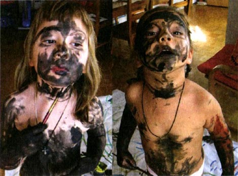 «Хочу поделиться тем, как Саша (ей полтора) стала рисовать — видимо, насмотревшись на меня. В течение дня периодически подбегает к мольберту и рисует разными цветами мелкие загогулины, одним цветом в разных местах, потом закроет фломастер, возьмет другой — добавит чуть-чуть и т. д., пока все пространство не заполнится. Изрисовала уже полрулона».