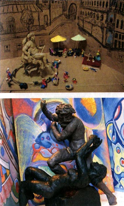 Мы начинаем оформлять работы. Рамы со стеклами 50x70, 100x70 сантиметров, для плакатов 180x120 расставлены вдоль стен. Оригиналы — в папке на столе. Маня, Франта, его старшие дочери Мышка и Кочка (кошка по-чешски) плюс Кочкина подруга расположились за столом чертежного зала. Младшие дочери, Марушка и Терезка, тоже хотят участвовать. Но Франта против.