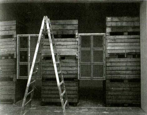 Упаковки специальной тончайшей фольги 10x15 сантиметров привозились Георгом из Вены. Поверхность размером три на два метра пропитывалась вонючим клеем, несколько часов сохла, после чего на нее накладывалась фольга — как кирпичики, но с напуском: между ними не должно быть щели. Как только листы сядут на клей, их надо тотчас ровнять специальным валиком. Один клеит — другой ровняет. Получается гладкая однородная поверхность, нечто вроде запотевшего зеркала с матовым блеском. Понятно, что сама по себе стена не является экспонатом — на ней будет висеть сотканный Фридл ковер, 140x80 сантиметров.