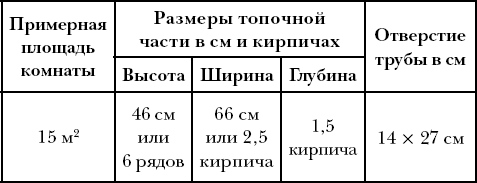 Все расчеты размеров топочной части камина можно свести в таблицу: