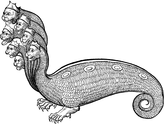 Семиголовая гидра, которую показывали публике в Венеции в 1530 году (Геснер, 1598).