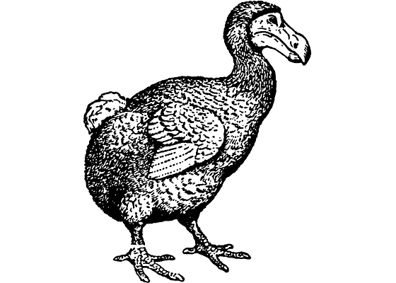 Дронт (остров Маврикия) Назван и описан Линнеем. В конце XVII века полностью истреблен.