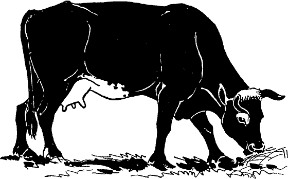 Корова с белыми пятнами на самых уступчивых местах: на вымени и на лбу.