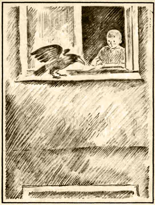 Тут на окно села старая седая ворона.