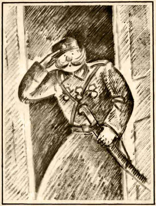 В дверях появился Городовой. Краснолицый, сивоусый, в чёрной шинели, с шашкой на боку.