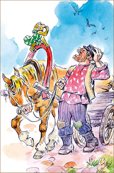 Приедут во двор подводы, весь двор забьют, пройти негде. А Яшка с возу на воз перелетает. Вскочит лошади на спину — лошадь топчется, гривой трясёт, фыркает, а Яшка не спеша на другую перепрыгивает. Извозчики только смеются и удивляются: