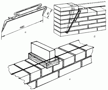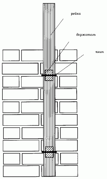Рис. 59. Крепление порядовки к кладке.