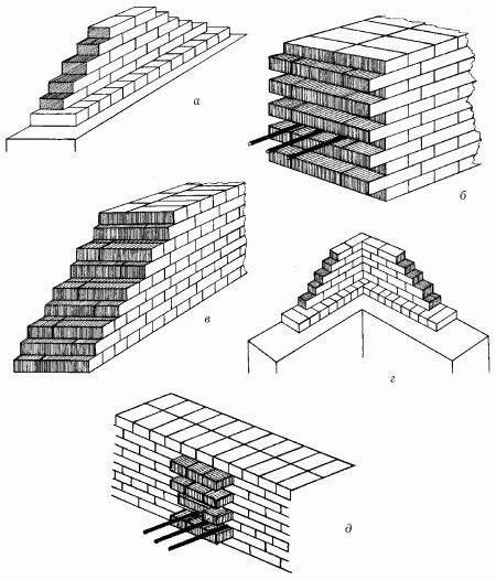 Дальнейший процесс возведения кладки зависит от принятого порядка кладки: порядного, ступенчатого или смешанного.