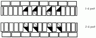 Кладку бутового камня выполняют по тем же правилам, что и кирпичную, включая системы перевязки и расположение швов.