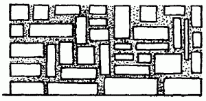 Слоистые камни не рекомендуется укладывать на ребро, их располагают в кладке с горизонтальной ориентацией слоев. При кладке из колотого бутового камня швам стараются придать горизонтальное положение.
