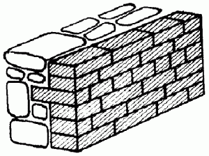Классическая кладка проста в исполнении, не занимает много времени, однако требует больших подготовительных работ, таких как обтесывание камней (рис. 66).