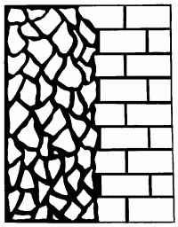 При возведении цоколя иногда возникает необходимость выполнить декоративную поверхность. Для этого можно использовать циклопическую кладку, для выполнения которой требуются околотые камни. Их располагают в верстовых камнях, с помощью раствора придают швам выпуклость и расшивают их (рис. 73).