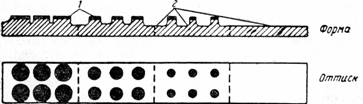 Схема построения печатной формы и передачи изображения в высокой печати: