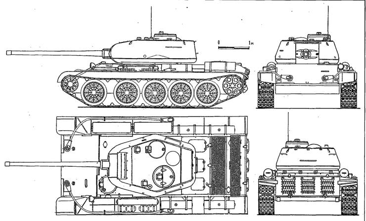ДВИГАТЕЛЬ: В-2-34, 12-цилиндровый, четырехтактный, V-образный дизель жидкостного охлаждения; рабочий объем 38 880 куб. см; мощность 400 л.с. (294,5 кВт) при 1700 об/мин.