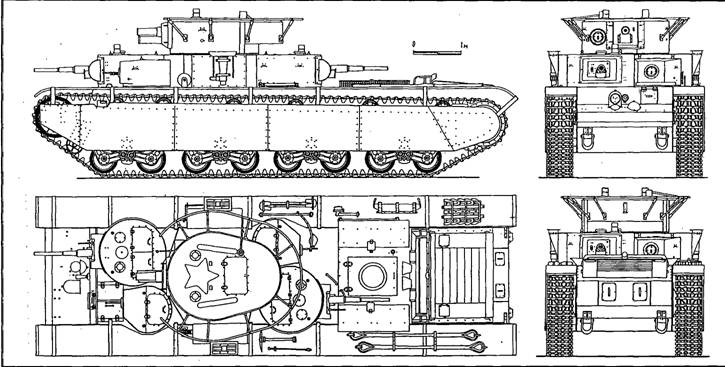 Изготовленный в 1932 году прототип танка имел массу 42 т, бронирование 30–40 мм и экипаж 10 человек. В пяти башнях устанавливались 76-мм пушка ПС-3, две 37-мм пушки Б-3, а также три пулемета ДТ. Опорные катки применительно к одному борту группировали попарно в три тележки. Верх главной башни имел округлую форму. Вслед за первым был изготовлен второй прототип, несколько отличавшийся формой башен.