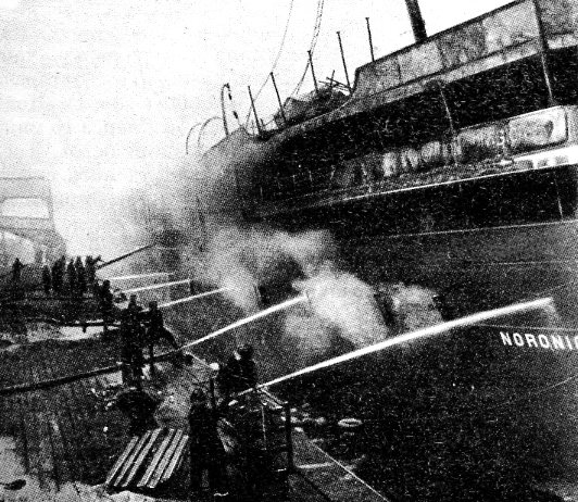 Канадская печать дала широкую огласку этому скандальному делу. Заметим прежде всего, что возраст парохода насчитывал 36 лет! Компания "Кэнада стим-шип лайнз лимитед" не сочла нужным снять его с эксплуатации или модернизировать даже после того, как лишилась своего флагмана - парохода "Хомоник", однотипного с "Нороником". Тот загорелся ночью от пожара берегового склада в порту Пойнт Эдвард на озере Онтарио 17 июля 1945 г., через 10 минут от "Хомоника" остался один обгоревший остов. Тогда 360 пассажиров и экипаж, к счастью, удалось спасти, перешвартовав судно. Владельцы отлично понимали, что "Нороник" в пожарном отношении представляет собой очень опасное судно.