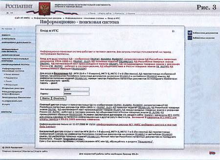 Заранее приготовьте список ключевых слов названия вашего изобретения, по которым будете проводить поиск. Начинать поиск следует с отечественной, то есть Российской, патентной базы. Для этого необходимо найти сайт Федерального института промышленной собственности (ФИПС) в любой поисковой системе или сразу ввести электронный адрес сайта ФИПС — www.fips.ru. Нажимаем на клавиатуре компьютера «Enter». Мы выйдем на главную страницу ФИПС (см. рис. 1).