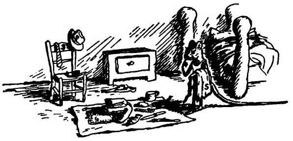 Он прокрался в спальню к спящей матери, залез по шнуру от лампы на комод и снял волос с ее гребенки, затем, аккуратно скрутив его, положил к остальным вещам в платок. Он сделал узелок, привязал его к концу спички, надел серую фетровую шляпу, франтовато сдвинул ее на один бок и с узелком через плечо крадучись вышел из дому.