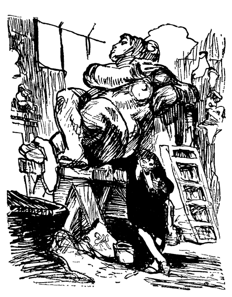 Шэн, ничего не отвечая, торжествующе захихикал себе в бороду, и все лицо его как бы осветилось солнцем. Окончательная глупость его покровителя, который довел приключение несчастного Шэна до полного абсурда, состояла в том, что, вопреки подлинному призванию Шэна — резать по дереву, буржуа направил все его усилия к живописи; Шэн писал, как каменщик, обращая краски в месиво, умудряясь загрязнить самые светлые и прозрачные тона. Однако при всем неумении его силой была точность, из-под его рук выходил тщательно отработанный наивный примитив; он стремился верно воспроизвести детали, в чем сказывалась ребячливость его существа, едва оторвавшегося от земли. Рисунок печки, съехавшей в перспективе набок, был сух, но точен. Однако написана она была мрачно, красками цвета тины.