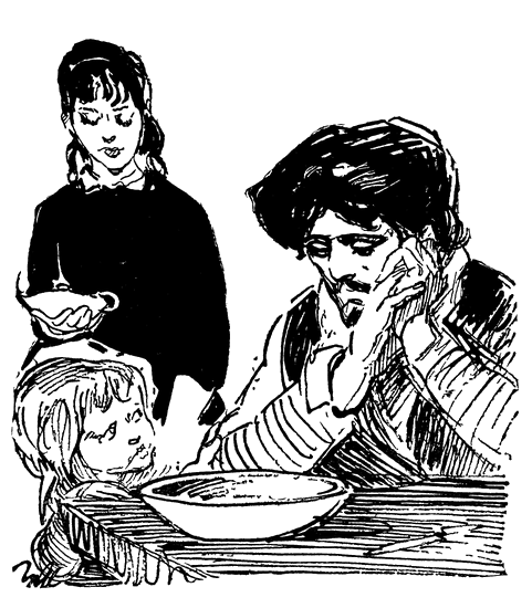 — Как! Больше ничего нет? — спросил он у Кристины. — Неужели ты не могла приготовить мяса? Опять деньги ушли на ботинки?