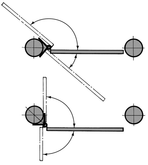Рис. 2.8.3. Варианты соотношения углов открытия калитки внутрь и наружу
