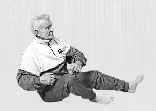 Сделав 8 шагов ягодицами, остановитесь, отдохните 3–5 секунд и снова сделайте 8 шагов. Выполнив 2 «восьмерки» шагов вперед (больше могут не позволить размеры комнаты), сделайте столько же шагов назад. Движения аналогичны. Отрывая правую ягодицу от пола, выполните легкий поворот туловища правым плечом назад, после чего опустите ягодицу, сделав в это время короткий и шумный вдох. Затем сделайте аналогичный шаг левой ягодицей, и так далее. Таким образом получится 16 шагов вперед и столько же назад – всего 32 шага.