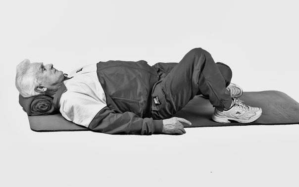 Сделайте подряд столько движений, сколько сможете. В дальнейшем нужно стремиться делать в быстром темпе 8 вдохов-пригибаний согнутого колена к поверхности, на которой вы лежите, чередуя правую и левую ноги. Затем отдохните (3–10 секунд) и снова сделайте 8 вдохов-пригибаний поочередно каждого колена.