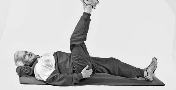 В начале освоения упражнения поднимать ногу до уровня живота не обязательно, особенно если вам это делать тяжело. Поднимайте ногу слегка, но строго следите за тем, чтобы она не гнулась в колене. И конечно, не забывайте одновременно с подъемом ноги коротко и шумно шмыгать носом. С каждой неделей ежедневных занятий прямая нога будет подниматься выше и выше. Поначалу делайте столько повторов этого движения, сколько вы в силах (2–4–8). Постепенно вы сможете увеличить число вдохов-движений.