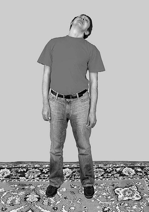 Шею ни в коем случае не напрягайте, туловищем не двигайте, глаза не закрывайте. Если кружится голова, сядьте и продолжайте выполнять упражнение сидя.